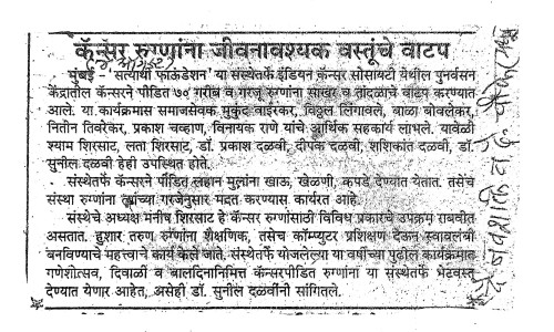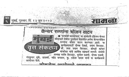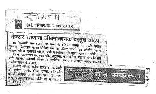 After forming Satyarthy Foundation, I met Mrs.Varsha sonawane (MSW) from Indian Cancer Society, she briefed me about her Indian Cancer Society regarding how they help cancer patients & rehabilite them.It's also interesting to know that the organization was established in 1999 at the initiative of Naval Tata. The work of the Indian Cancer Society is truly inspiring and it's wonderful to see my "Satyarthy Foundation" supporting their cause. Mrs.Varsha sonawane (MSW) explained to me how they help cancer patients in terms of providing daily wages to needy people, such as providing training and jobs for file making, printing work, leather work such as purse making, etc. Since most of the patients are needy and poor, this kind of support can go a long way in providing daily needs of cancer patients to those who are struggling. This really makes a difference in the lives of citizens of India across the country. So based on that "Satyarthy Foundation" has also started providing grains, food related items & lunch etc. to those 80-100 needy Cancer Patients.